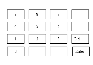 (2). 8位数码显示,初始化时,显示“P ”,接着输入最大6位数的密码,当密码输入完后,按下确认键,进行密码比较,然后给出相应的信息。在输入密码过程中,显示器只显示“8.”。当数字输入超过6个时,给出报警信息。在密码输入过程中,若输入错误,可以利用“DEL”键删除刚才输入的错误的数字。